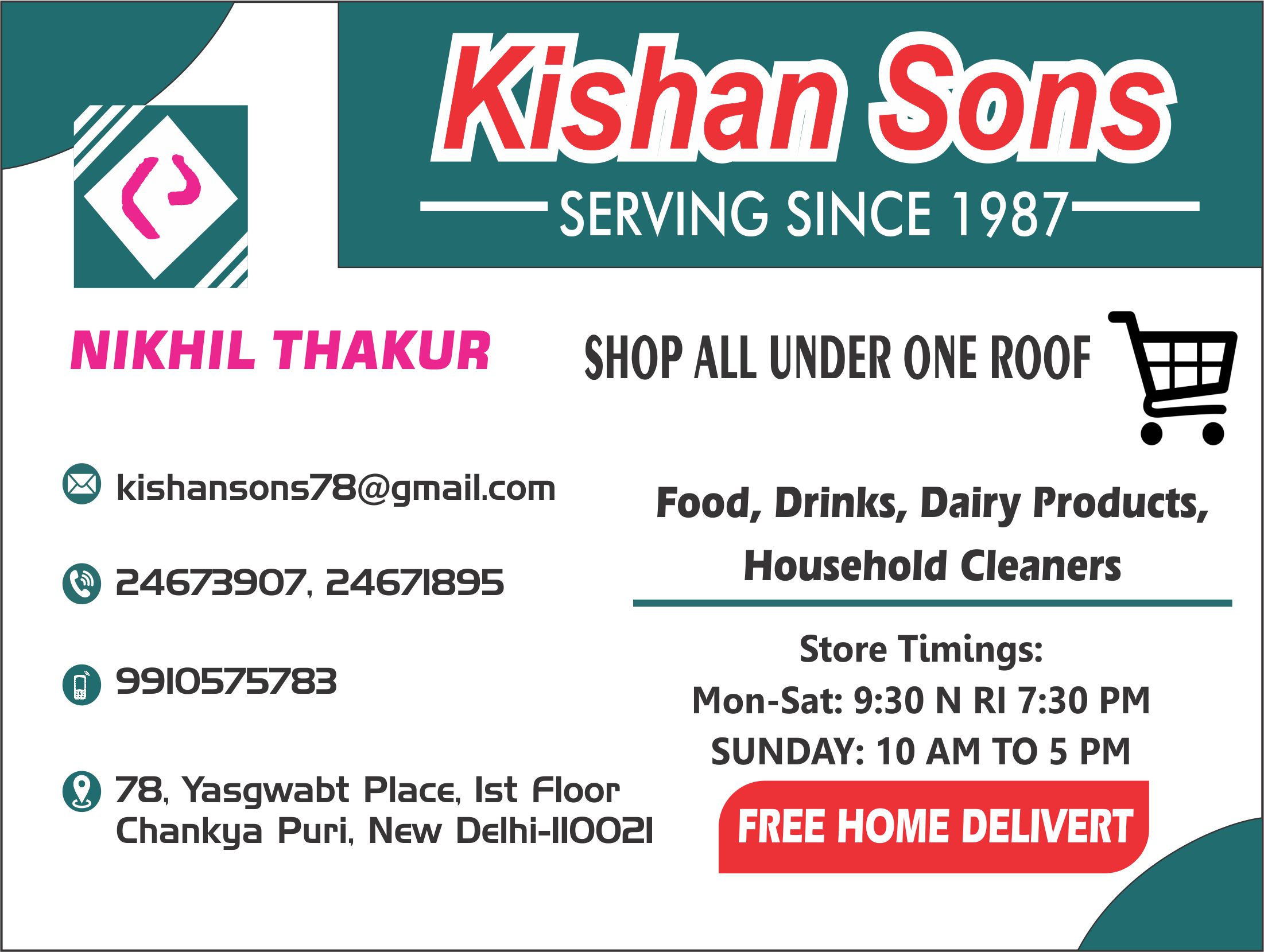 KISHAN SONS SEVING SINCE 1987 (Grocery Store in Chanakyapuri)